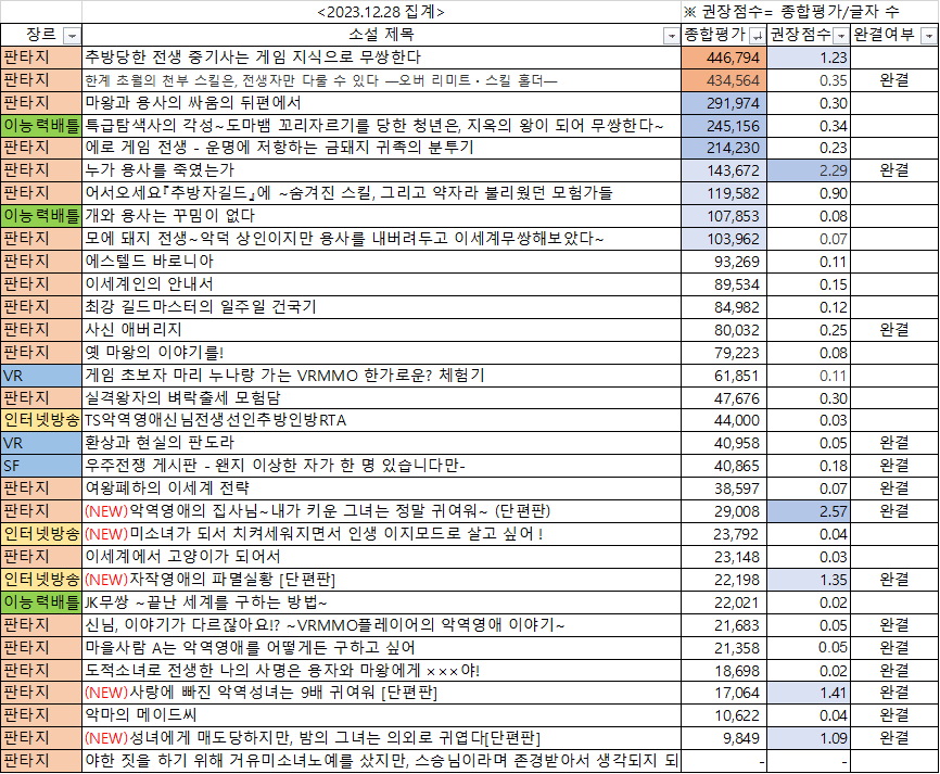자기가 시간이 많다, 재미만 있으면 된다는 분은 재미의 총량을 나타내는 종합평가를 보고 판단하시면 되고